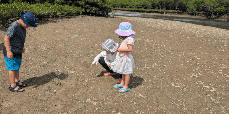 干潮時:カヌーから降りてマングローブに生息している生き物の観察ができます。
