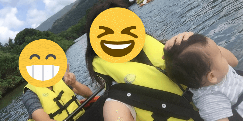 抱っこ紐を装着して、2人乗りのカヌーで、前にわたしと息子、後ろに夫が乗って漕ぎました。
