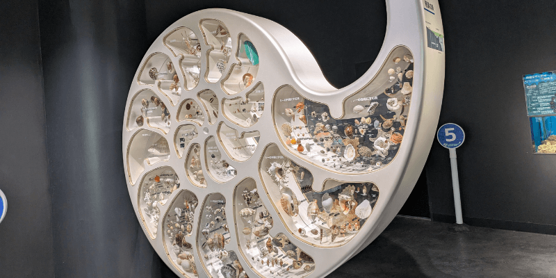 貝の種類もさまざまですね!じっくり観察したくなる展示が多いです。