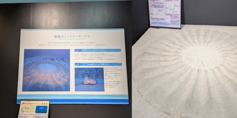 アマミホシゾラフグが海底につくる産卵巣の模型もありました。まるでミステリーサークル!