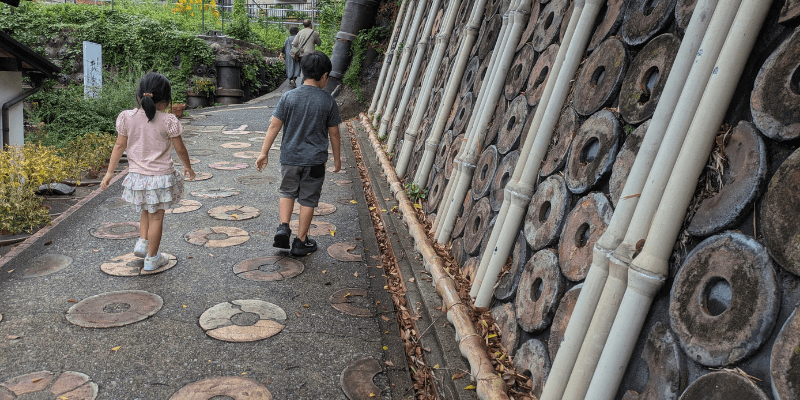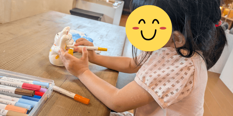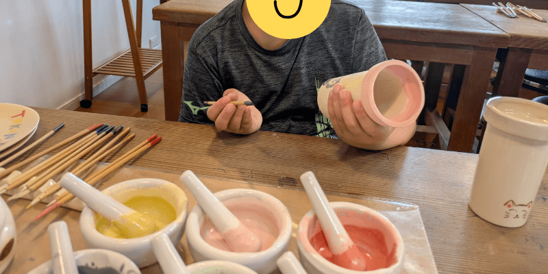 小3の息子は、土管の形の陶器に筆で絵付けしました!