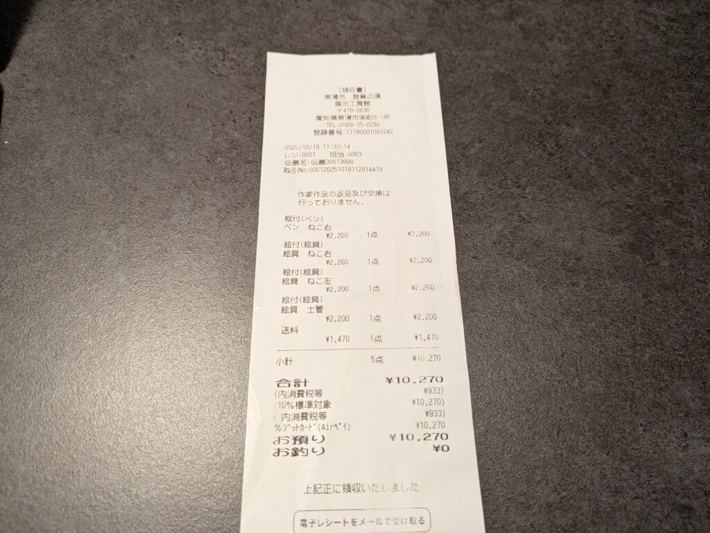 我が家は招き猫3つ、土管1つ、送料1470円(名古屋市までの送料)合計で10270円でした。
